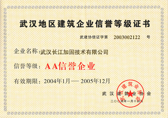 获武汉建筑、建设委员会“AA信誉企业”证书